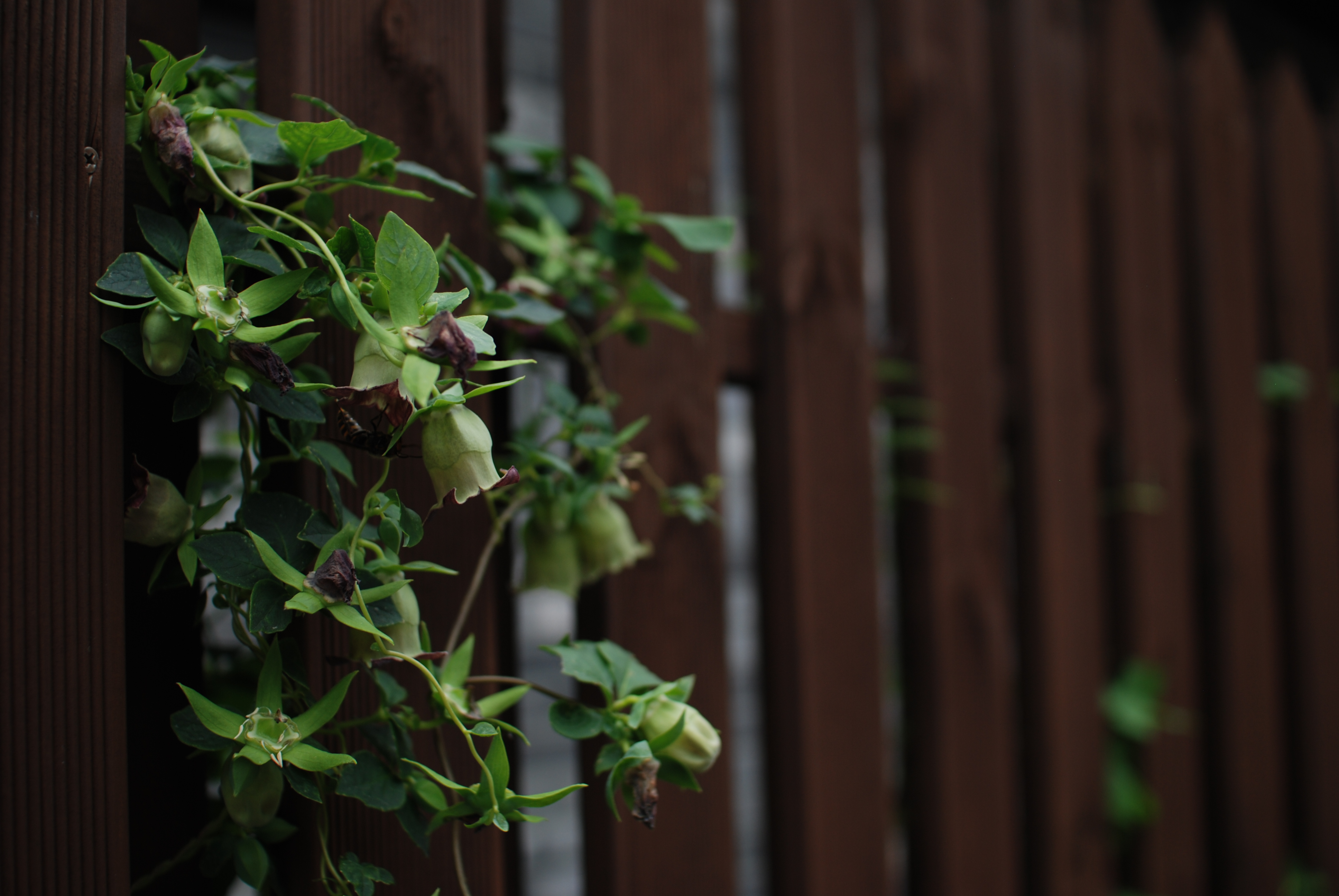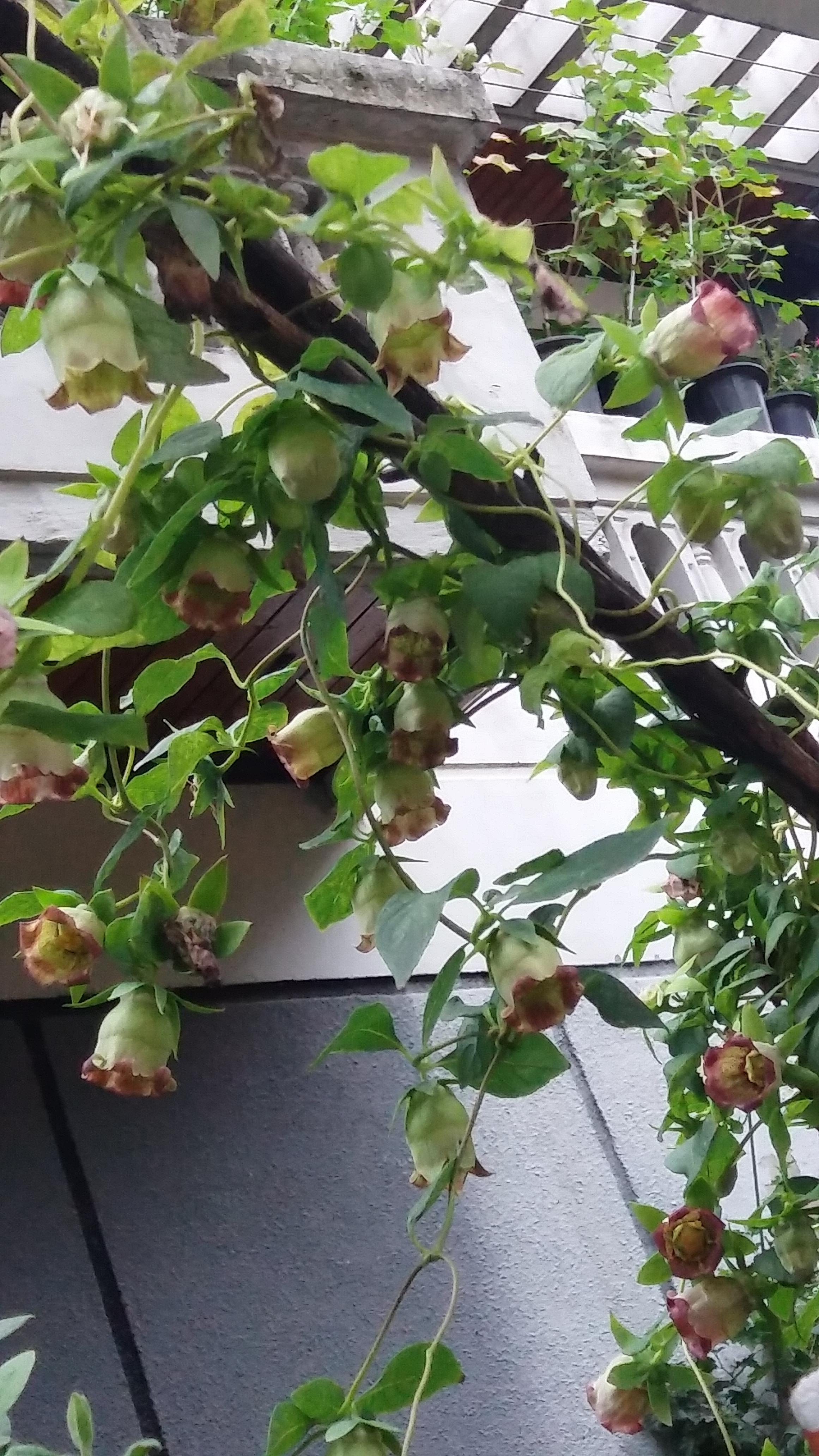 8월 중순, 지지대를 타고 오르기만 하던 더덕 넝쿨에서 더덕 꽃이 피기 시작했다.