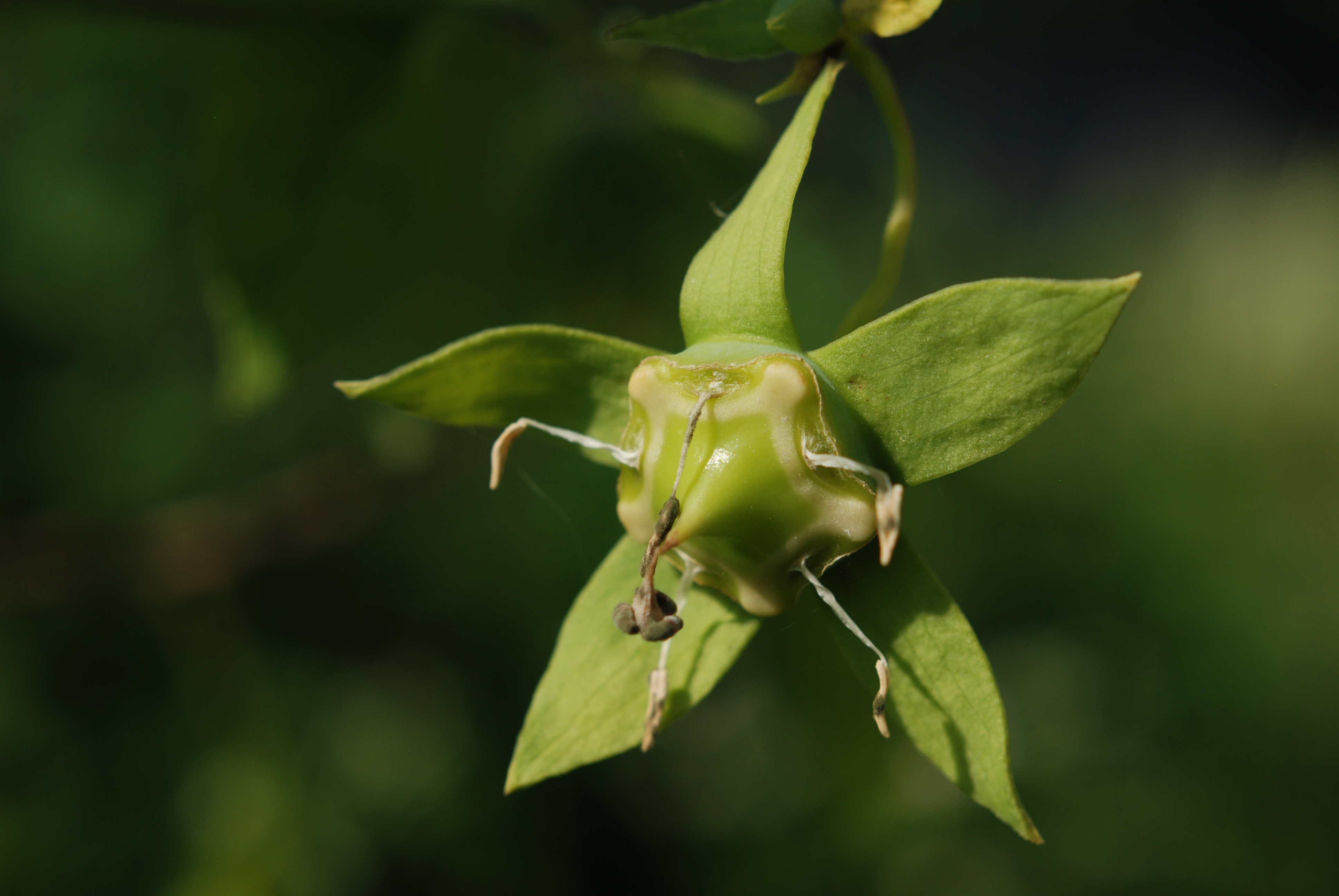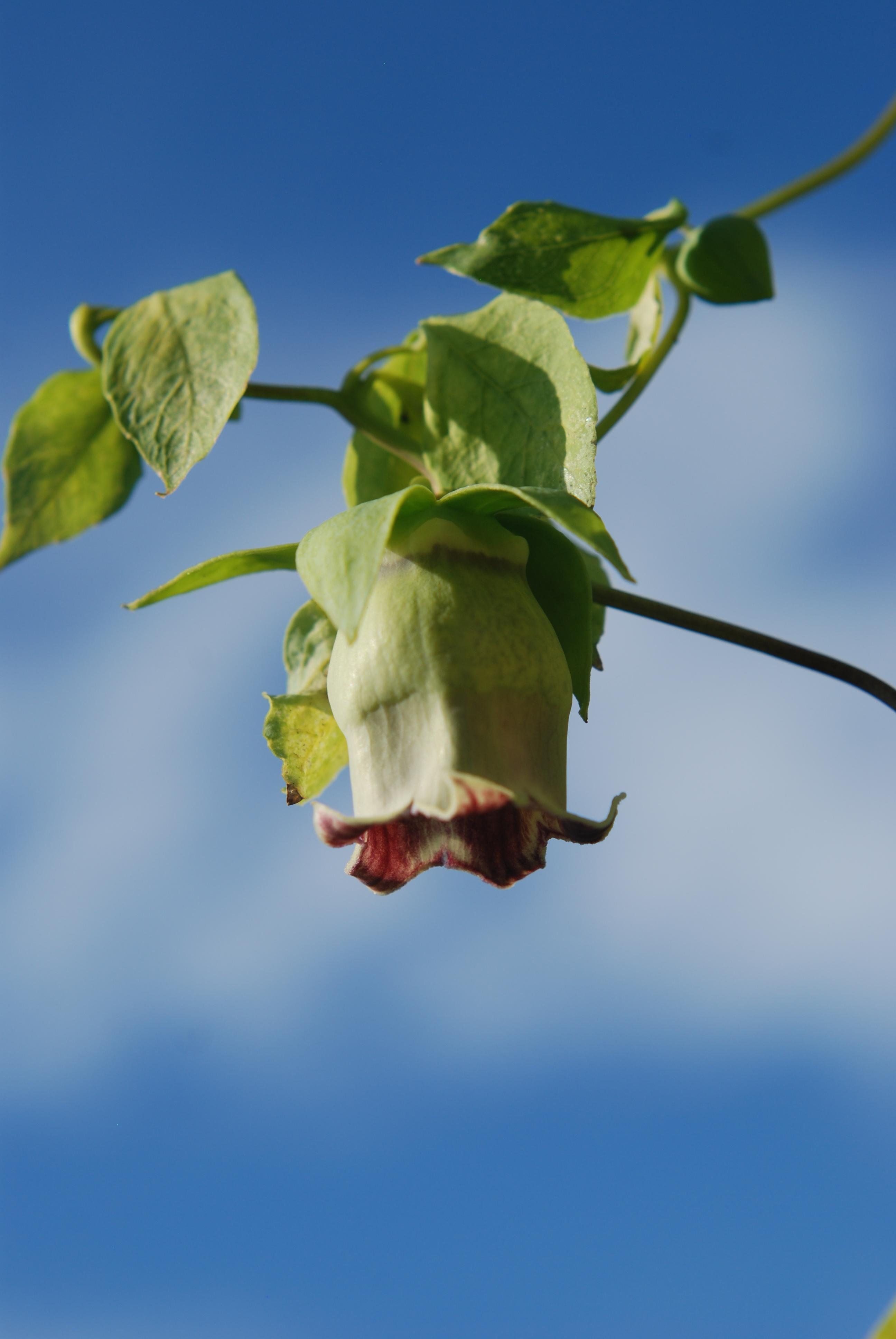 바람을 빵빵하게 채우며 부풀던 더덕 꽃봉오리가 폭 하고 바람이 빠지며 터진 것이다.
