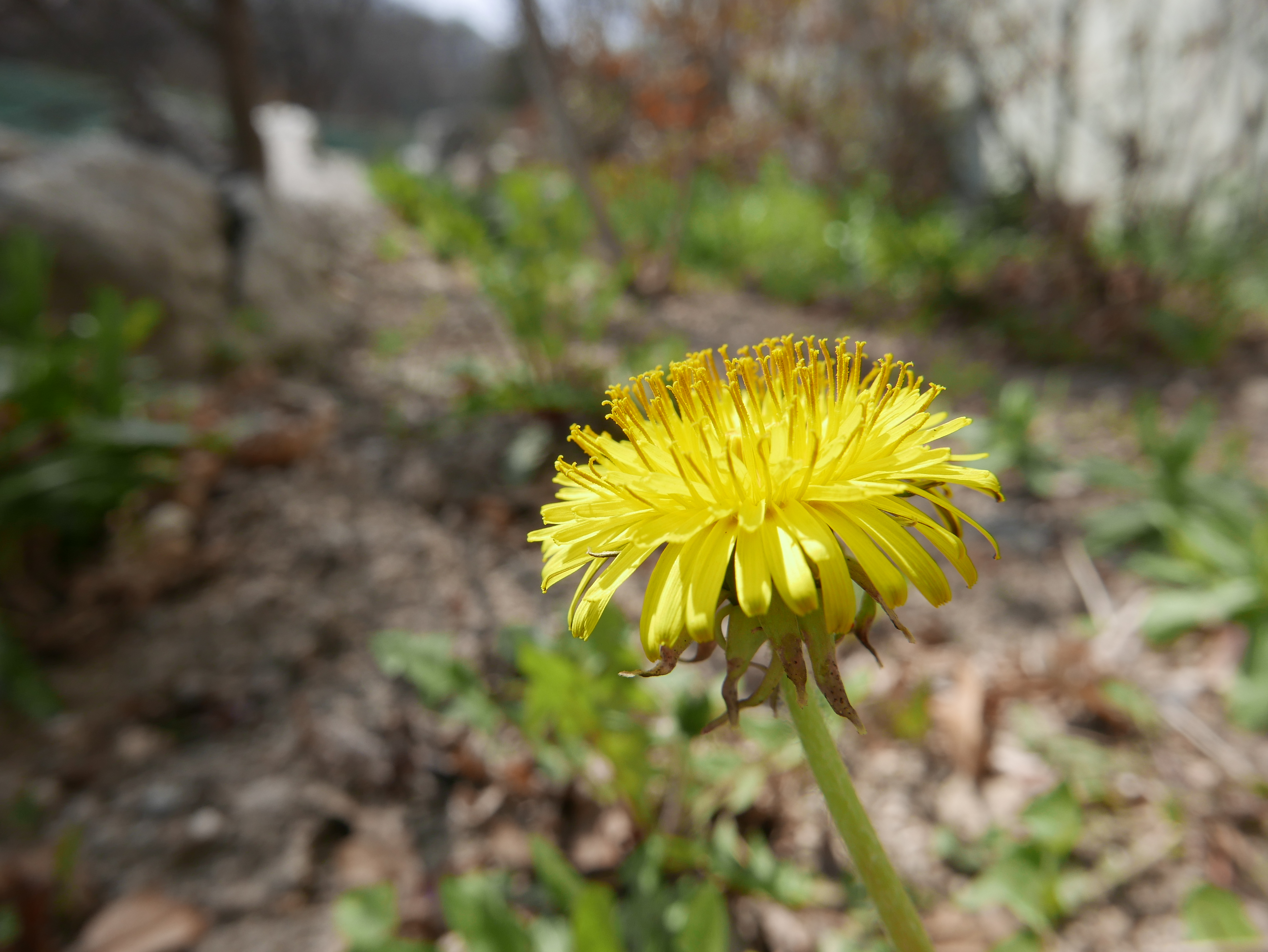 화단 양지 바른 곳에 벌써 민들레가 폈다.
